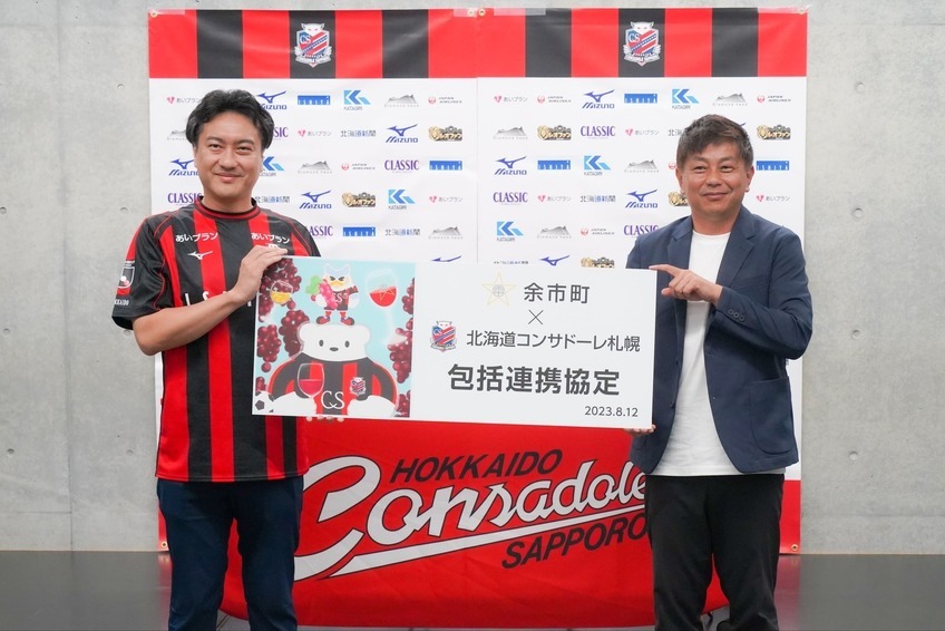 町は、日本プロサッカーリーグに加盟する北海道コンサドーレ札幌を運営する「株式会社コンサドーレ」と、スポーツのみならず、地域課題の解決に向け様々な相互連携・協同による活動を通した地域の活性化を目的として包括連携協定を締結しました。